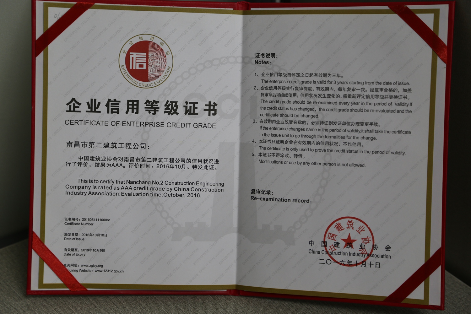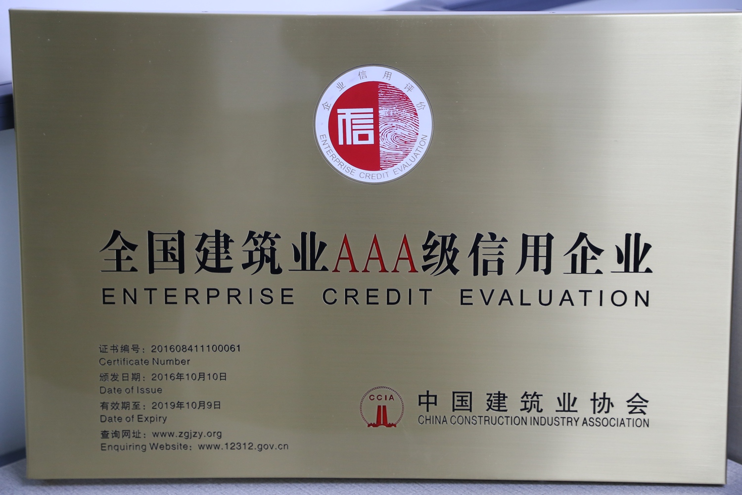企業(yè)信用等級是由中國建筑業(yè)協(xié)會經(jīng)審核、篩選和評定而確定的,有效期3年,每年復審一次。由于公司一直本著誠信、服務(wù)、質(zhì)量為上的原則,獲得了中國建筑業(yè)協(xié)會及社會大眾的認可,2016年10月公司再度榮獲“AAA級信用企業(yè)”的榮譽稱號。這個全國建筑行業(yè)都為數(shù)不多的榮譽是對我們企業(yè)的肯定及嘉獎,讓我們樹起信譽旗幟,再創(chuàng)輝煌,攜手走得更好、更遠。